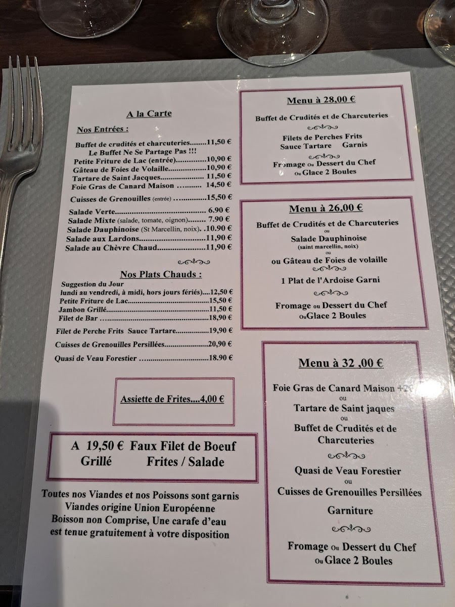 Welcome to Restaurant Le Relais de la Tourelle, a true gem nestled in the picturesque Villages du Lac de Paladru. This French restaurant presents a delightful menu that reflects the heart of traditional French cuisine. Indulge in mouthwatering dishes like the exquisite filets de perche, which guests recommend accompanied by a flavorful gratin dauphinois. The intimate atmosphere, with a cozy fireplace in winter and a sun-drenched terrace in summer, invites you to relax and savor each bite.